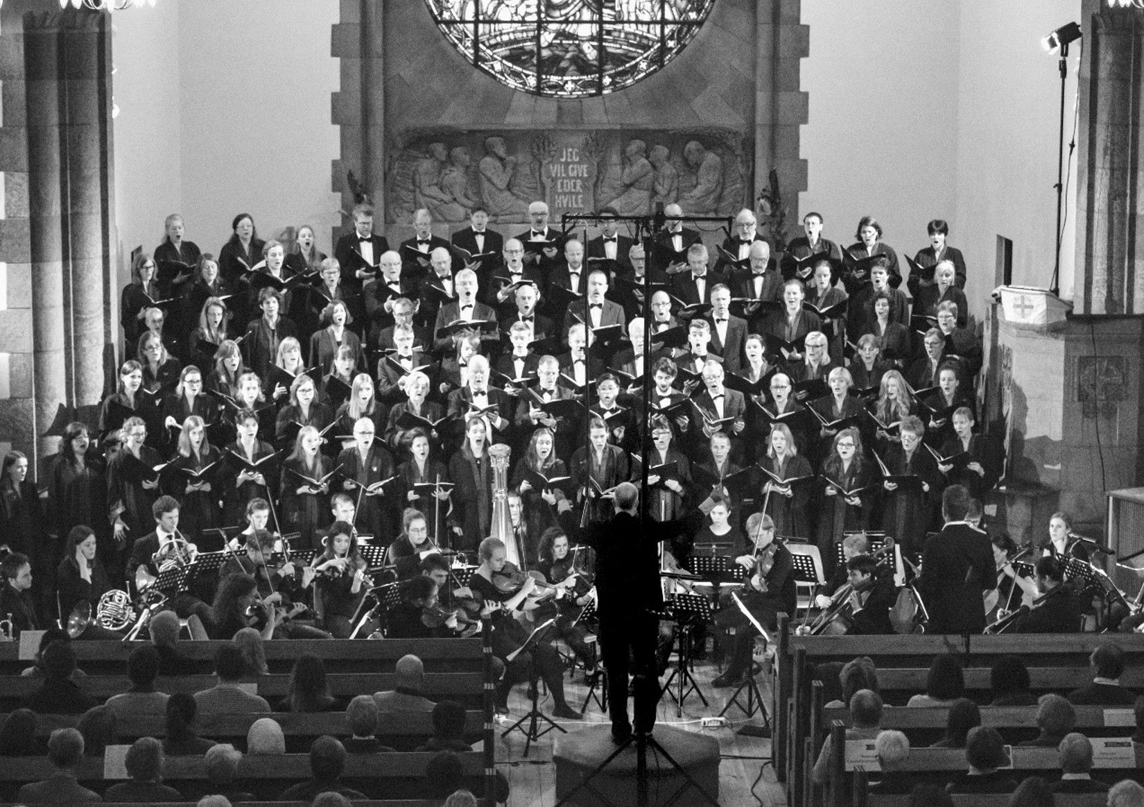 Vi fremfører store verk med profesjonelle solister og orkester, og har fire konserter i året – alle i vakre Frogner kirke. Hver jul synger vi tradisjonen tro Bachs Juleoratorium.