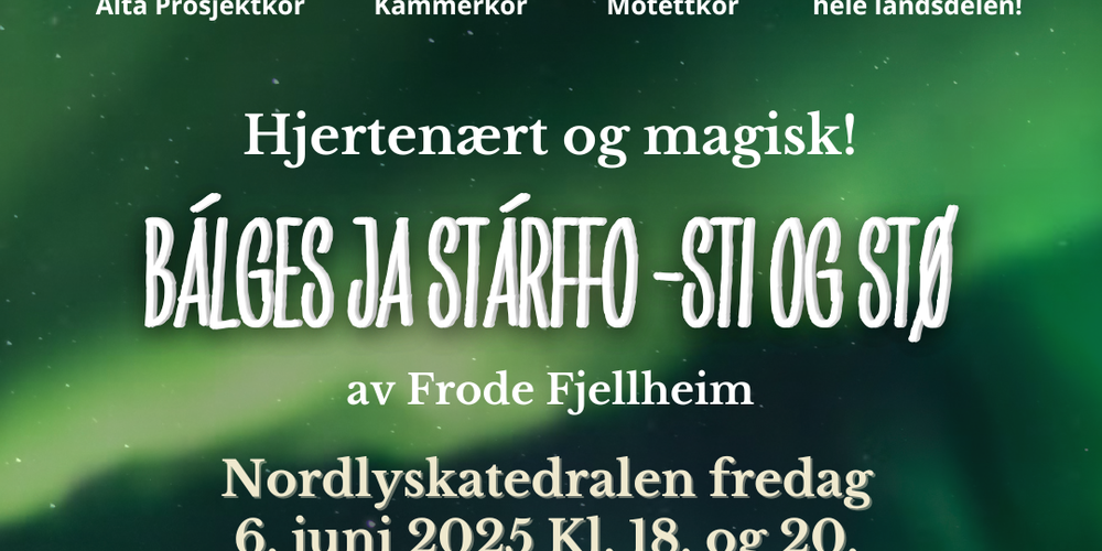 Det blir magisk når 100 korsangere skal fremføre det nyskrevne og kritikerroste verket "Bálges ja Stárffo - Sti og Stø" av Frode Fjellheim i Nordlyskatedralen. Dette er et verk med storslagne korsatser med tonesatte tekster av Petter Dass og Marianne Meløy krydret med moderne samiske rytmer.
