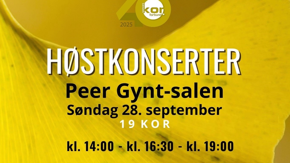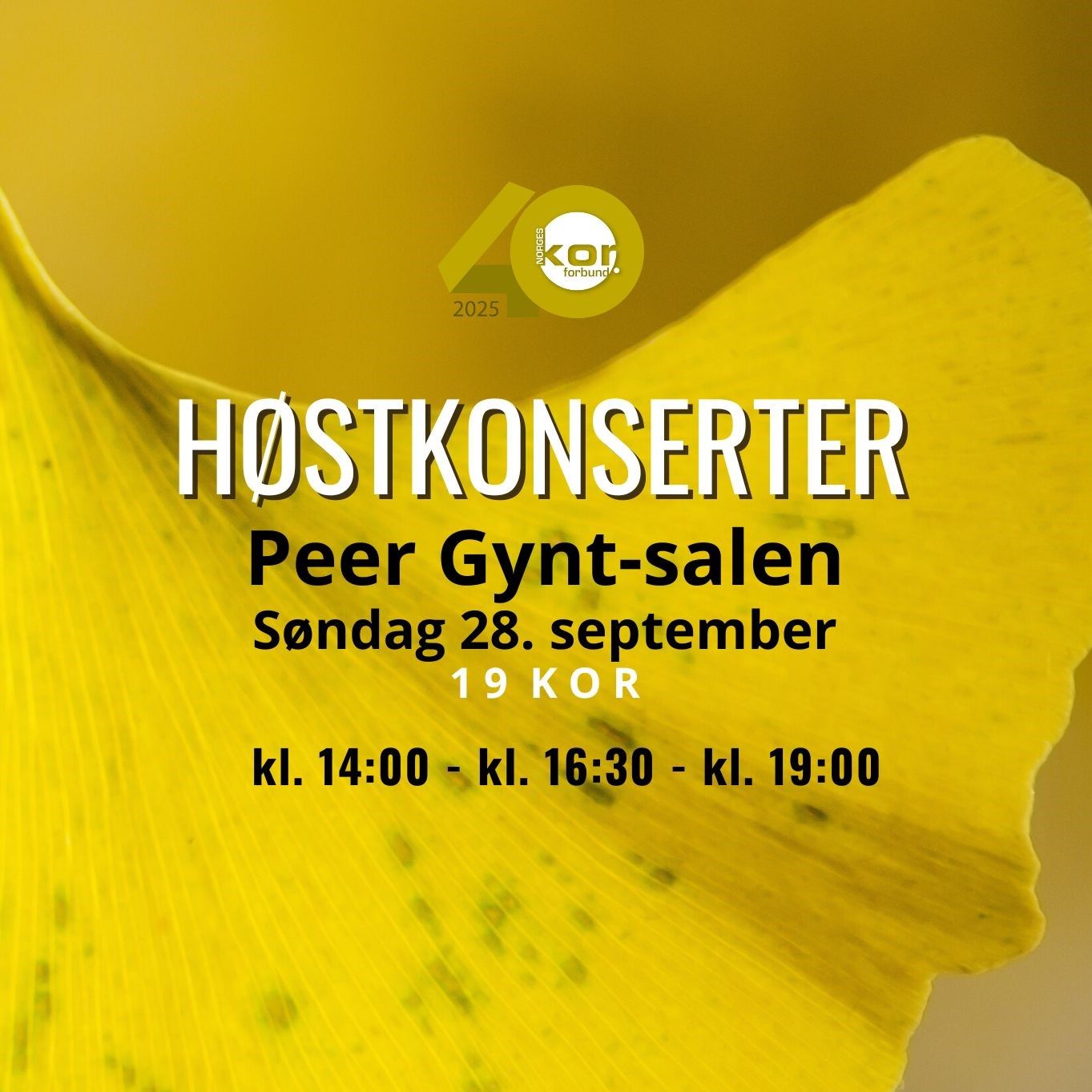 Norges Korforbund Hordaland har gleden av å invitere til HØSTKONSERTER søndag 28. september i Peer Gynt-salen