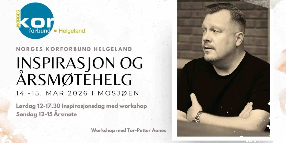 Norges Korforbund Helgeland ønsker velkommen til Inspirasjon og Årsmøtehelg 14.- 15. mars i Mosjøen.