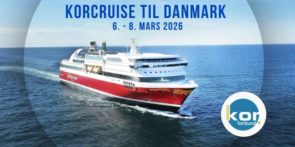 Sett av tiden for Korcruise til Danmark 6. - 8. mars 2026 med øvingshelg i forkant 14. - 15. februar. Jon Flydal Blichfeldt er med "korcruiskaptein" og dirigent.