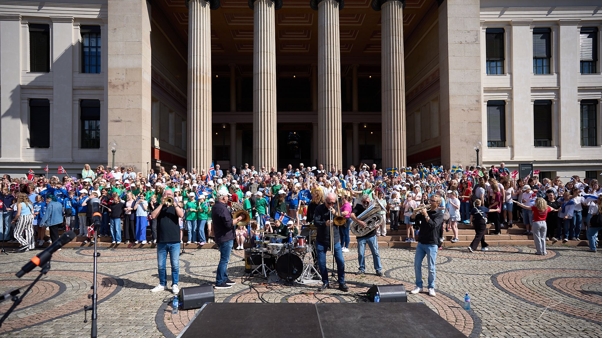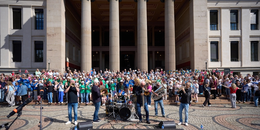 Hver dag startet med fellessang, der nordiske sanger ble øvd inn frem mot en storslått konsert på Universitetsplassen. Der dannet vi et imponerende felleskor sammen med barn og unge fra Nordbusang – en sterk opplevelse for både deltakere og publikum!