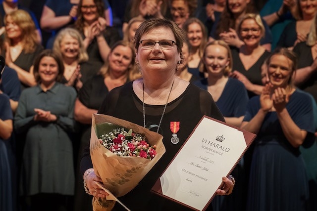 - Hun har evnet å kombinerer de gamle stolte kortradisjonene med nytenkning og innovasjon. Hun har aldri vært redd for å prøve ut nye ting. Men alltid med et solid krav om kvalitet i prosessen og i det ferdige resultatet. For oss som organisasjon har dette hatt veldig stor betydning. Og dette har også skapt nye og gode verdier for publikum og samfunnet rundt oss. Hun setter tydelige spor etter seg, sier president i Norges Korforbund Trond Håskjold.