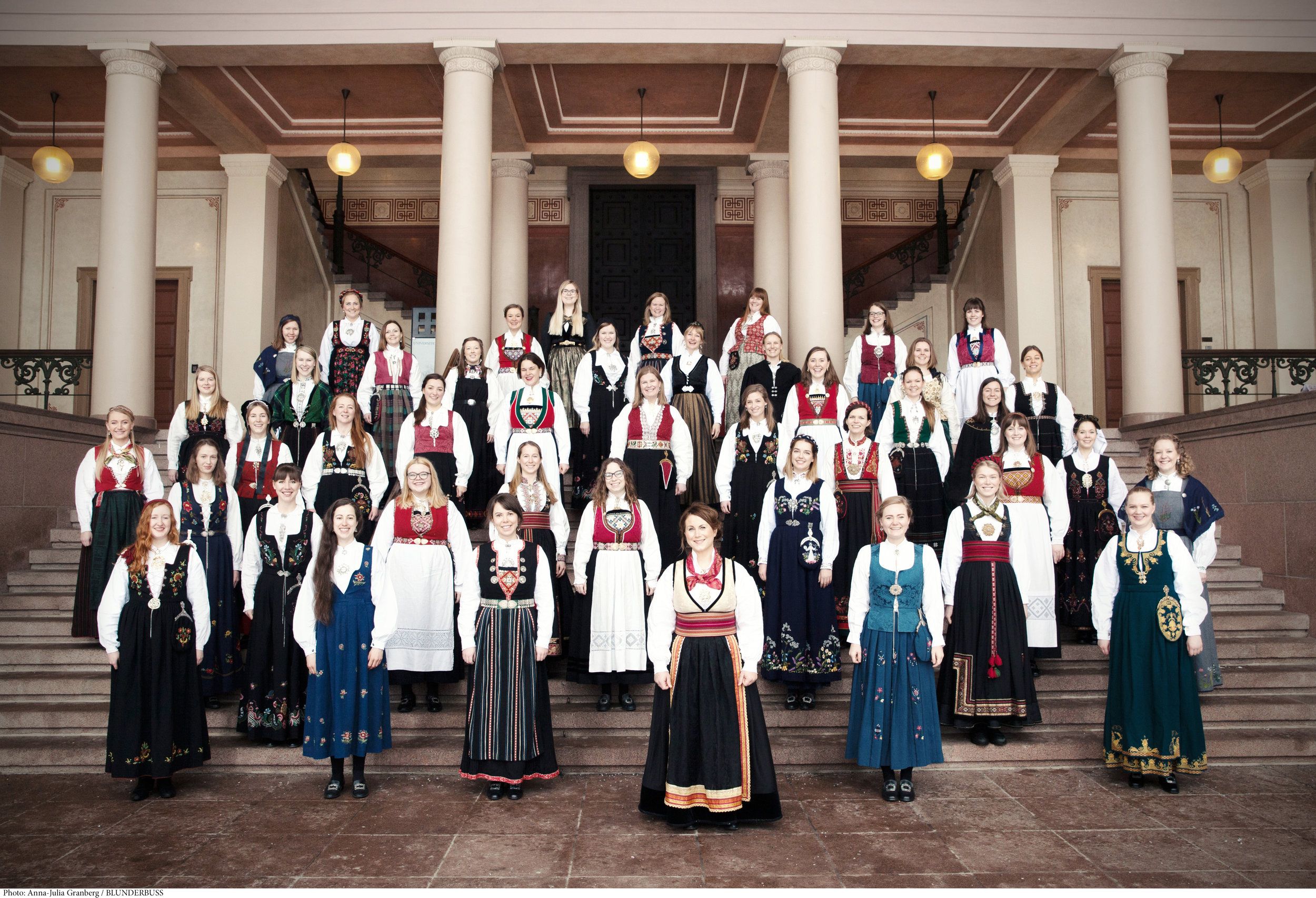 – Kjolene skal være knelange og med relativt tildekkede skuldre (ikke spagettistropper), men alle kan fremdeles tilpasse form og farge til sin kropp og stil. Dette skaper en større spenning i scenebildet, sier Ingrid Strand Amundsen som er markedssjef i KSS. Ved utenlandskonserter stiller koret ofte i egne bunader.
