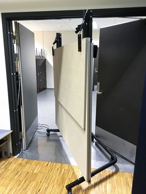 For å bedre akustikken for spesielt kor og sangsolister er det anskaffet åtte slike mobile lydreflekterende vegger. Veggene, som produseres i USA, lagres til daglig i et lagerrom bak sceneområdet. Veggene går på hjul og stilles opp uavhengig av hverandre. De er 1,80 meter brede og 2 meter høye når de står lagret. Ved bruk kan de heves slik at hver vegg blir ca 4,5 meter høy. I tillegg til at de reflekterer lyd, bidrar de til å avgrense scenerommet. De kan enkelt trilles inn og heves opp av en til to personer og det krever ingen bygningsmessige inngrep.
